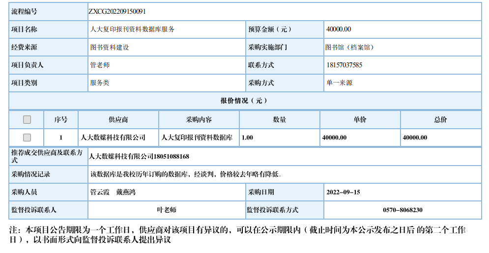 衢州职业技术学院人大复印报刊资料数据库服务自行采购信息公示