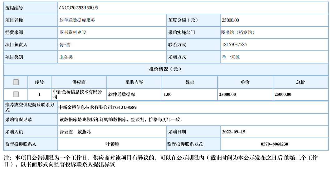 衢州职业技术学院软件通数据库服务自行采购信息公示
