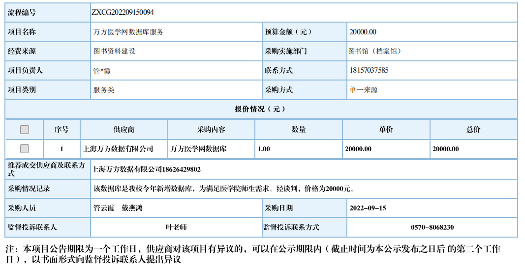 衢州职业技术学院万方医学网数据库服务自行采购信息公示