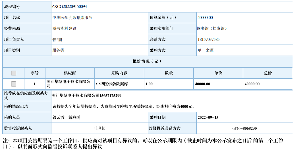衢州职业技术学院中华医学会数据库服务自行采购信息公示