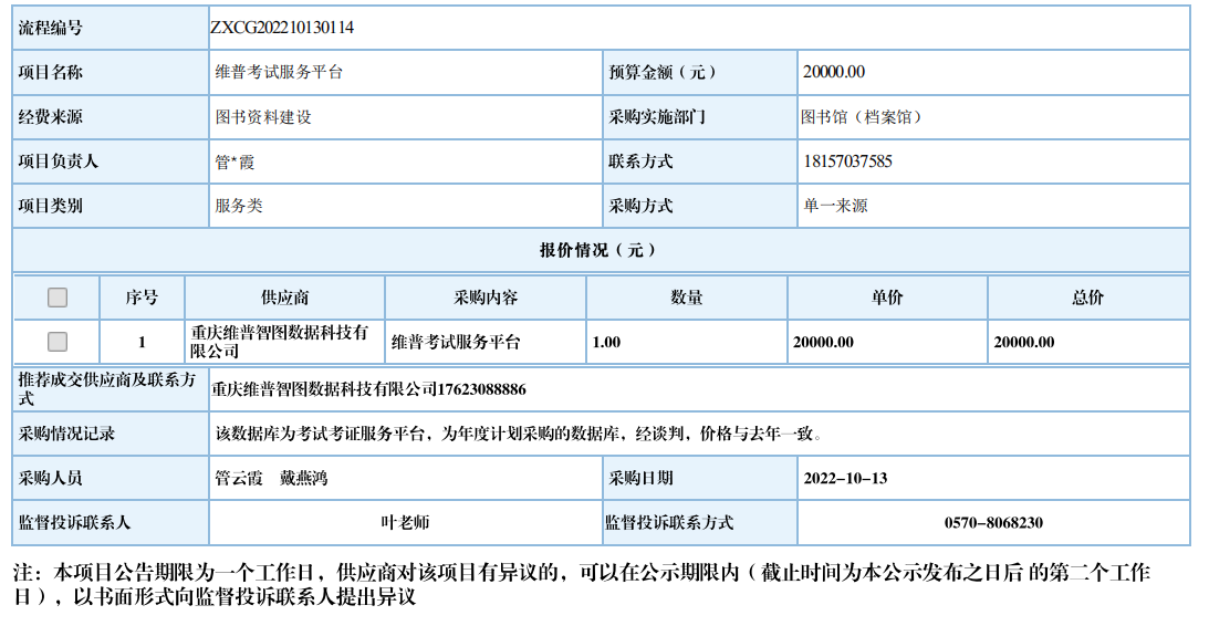 衢州职业技术学院维普考试服务平台自行采购信息公示