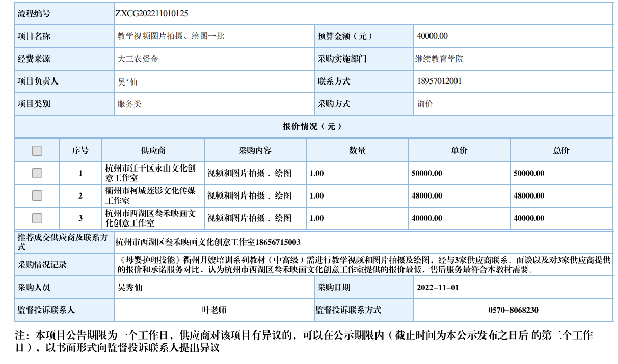 衢州职业技术学院教学视频图片拍摄、绘图一批自行采购信息公示