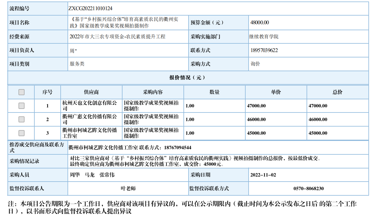 衢州职业技术学院《基于“乡村振兴综合体”培育高素质农民的衢州实践》国家级教学成果奖视频拍摄制作自行采购信息公示