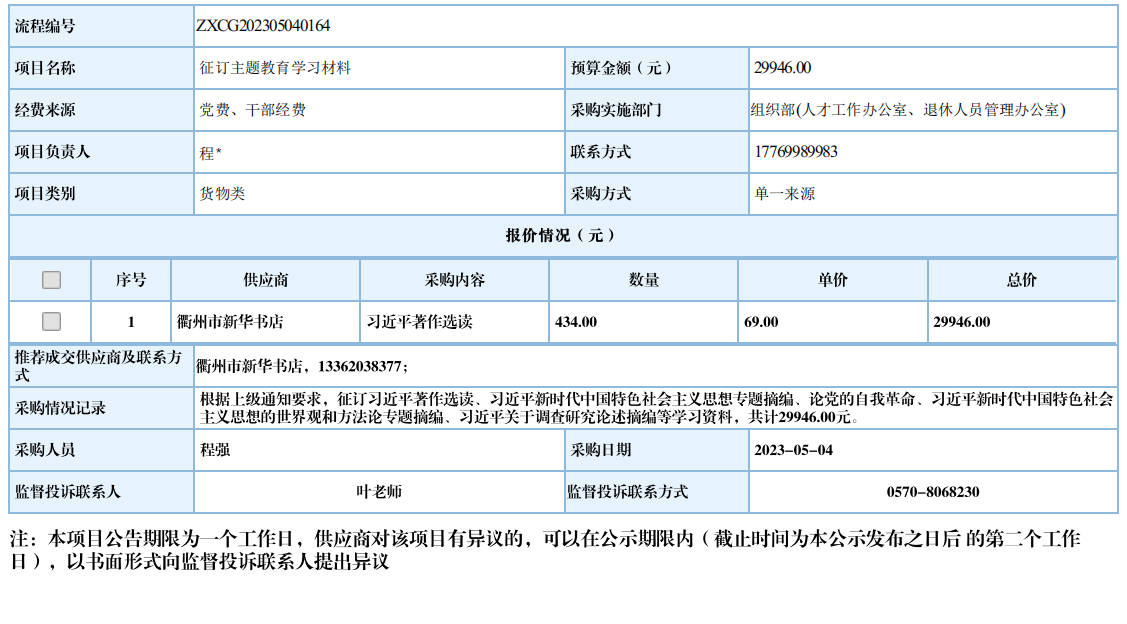 衢州职业技术学院征订主题教育学习材料自行采购信息公示