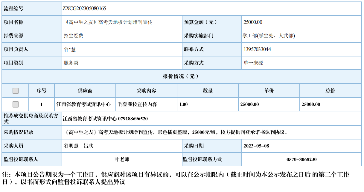 衢州职业技术学院《高中生之友》高考天地板计划增刊宣传自行采购信息公示