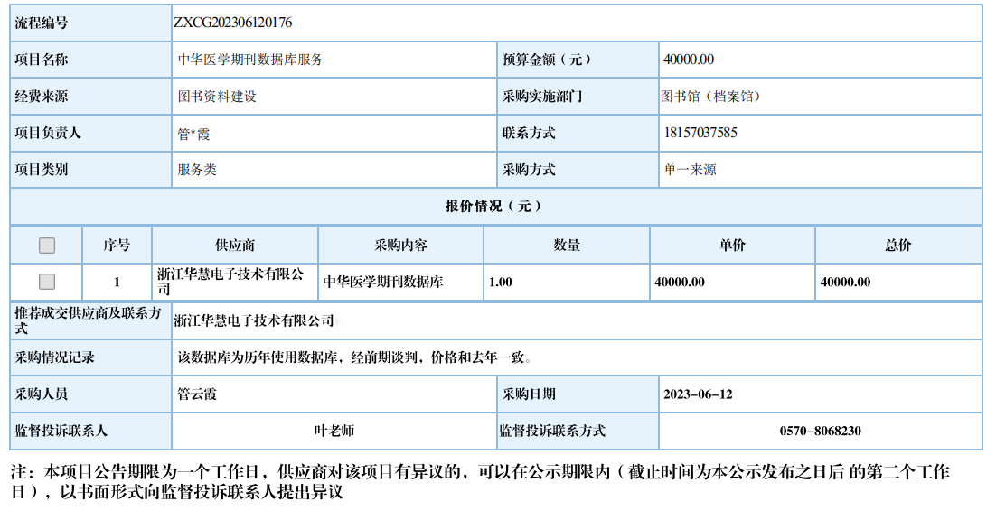 衢州职业技术学院中华医学期刊数据库服务自行采购信息公示
