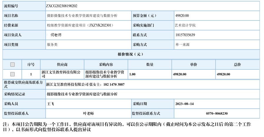衢州职业技术学院摄影摄像技术专业教学资源库建设与数据分析自行采购信息公示