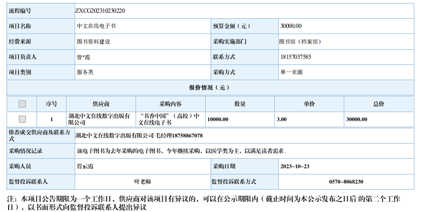 衢州职业技术学院中文在线电子书自行采购信息公示