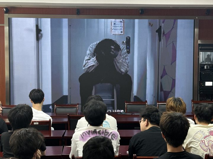 何韧之带领全体与会人员观看廉洁主题作品视频,通过校园廉洁故事,再次强调学生干部应树廉洁之心、行廉洁之事、做廉洁之人。