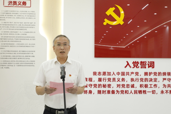 新党员入党宣誓,老党员重温入党誓词。何百通领誓并讲话。他代表学校党委向新党员同志们表示衷心的祝贺!向全校党员致以节日的问候和崇高的敬意!他希望新老党员要在坚定理想信念上当先锋、作表率。 要坚定拥护“两个确立”,坚决做到“两个维护”,增强“四个意识”,坚定“四个自信”,提升政治三力,坚定政治信仰、政治立场。把对马克思主义和共产主义的崇高信仰,对中国特色社会主义的坚定信念作为终身追求。自觉用习近平总书记系列重要讲话精神武装头脑、指导实践、推动工作。要在锤炼党性上当先锋、作表率。要牢记中国共产党的初心和使命,自觉在思想上、政治上、行动上同党中央保持高度一致,全面增强政治意识和党员身份意识。重视作风建设,提升党性修养。严格遵守各项党的纪律,做到学纪、知纪、明纪、守纪,推动党纪学习教育入脑入心。要在“四慎”自律上当先锋、作表率。要规范言行,坚持廉洁自律,慎独慎微慎言慎行。在日常工作、学习和生活中不断涵养高尚人格修为,发挥先锋模范作用,获得群众认可。自觉净化朋友圈、社交圈、生活圈,做时代风气的先觉者、先行者、先倡者,自觉维护党员形象,展现“衢职先锋”风采。要在争先创优上当先锋、作表率。要以习近平新时代中国特色社会主义思想为指导,肩负起新时代新征程党赋予的使命任务,传承弘扬党的优良传统,在各自岗位上积极探索、大胆实践,争当干事创业的排头兵,勇于争先创优、敢于担当作为。