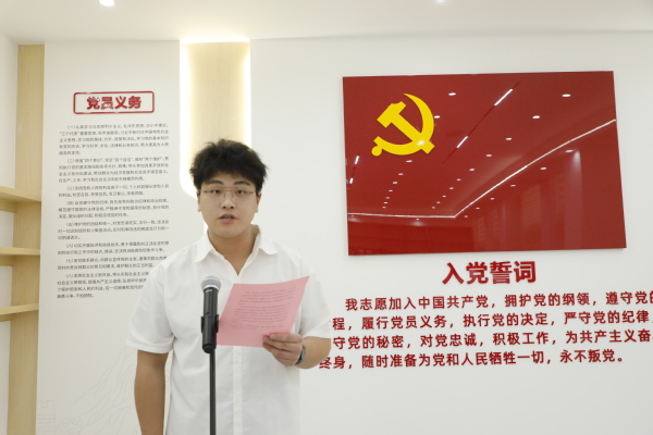 新党员代表、材料与化工智能制造学院学生党员郑德镇发言。