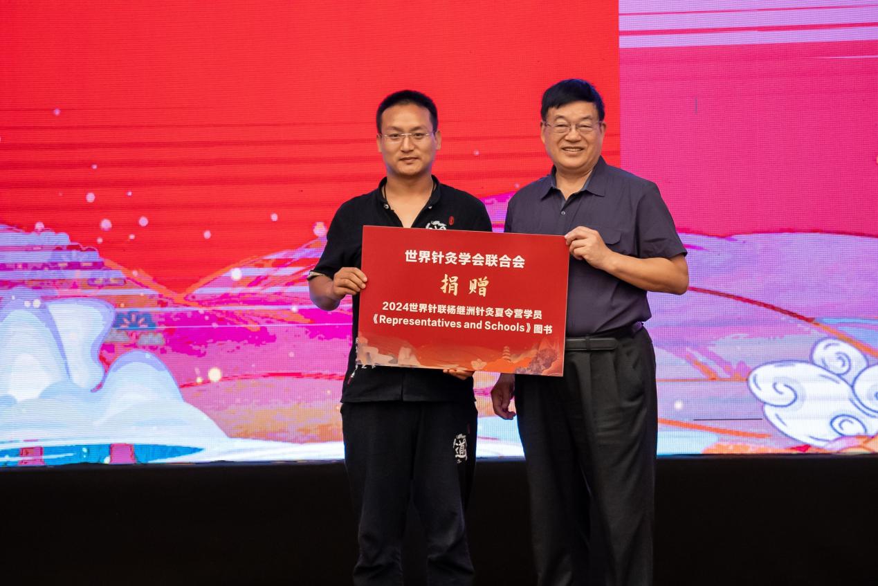 刘保延为2024世界针联杨继洲针灸夏令营营员赠书。