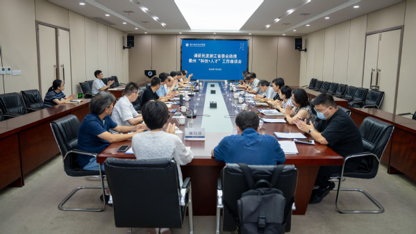 7月26日上午,民进中央青年工作委员会主任杨金龙带队来校调研“科技+人才”工作推进情况,民进中央社会服务部副部长李长青,民进省委会副主委、浙江民进博士团团长鲍虎军,民进省委会社会服务部部长吴海燕,民进衢州市委会专职副主委曹蓉等参加调研,衢州市政协副主席、民进衢州市委会主委黄伟青主持座谈会。我校党委书记徐须实,党委副书记、校长吕延文,党委委员、副校长余建军参加会议。
