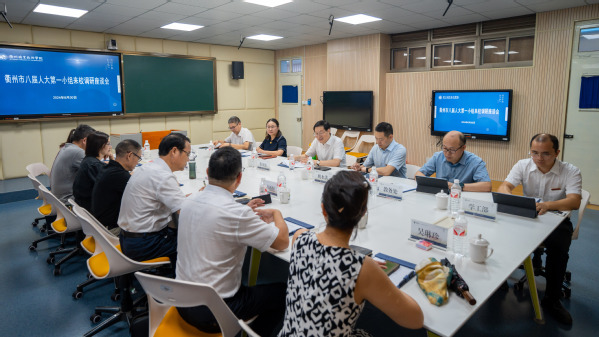 8月30日下午,市八届人大柯城区代表团第一小组组长、柯城区中医院院长丁辉有,市人大常委会专职委员周良车,柯城区鹿鸣小学校长、书记郑美宏,浙江金马建设工程机械有限公司董事长严冠南,巨化集团公用事业部党委书记方建,浙江时友律师事务所副主任廖品利,衢州柯城幸福医院董事长吴琳珍等市八届人大代表就中医药人才培养这个主题来校调研,我校党委书记徐须实,党委委员、副校长姚水洪陪同。