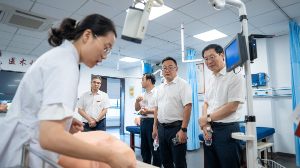 代表们参观了四省边际大健康公共实训中心、医护康养实训中心等,详细了解我校在专业建设、服务地方经济社会发展等方面的基本情况。