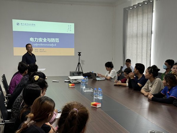 专家团成员赴衢州职业技术学院-通天星“丝路学院”开展“中文+职业技能”培训,与浙江通天星集团柬埔寨全资子公司加利福家具材料有限公司就高质量建设“丝路学院”进行交流。廖东进教授、陈锦娟副教授、洪兴华副研究员先后为柴桢大学师生、加利福员工作电气自动化、中国语言与文化、南孔文化等方面专题讲座。
