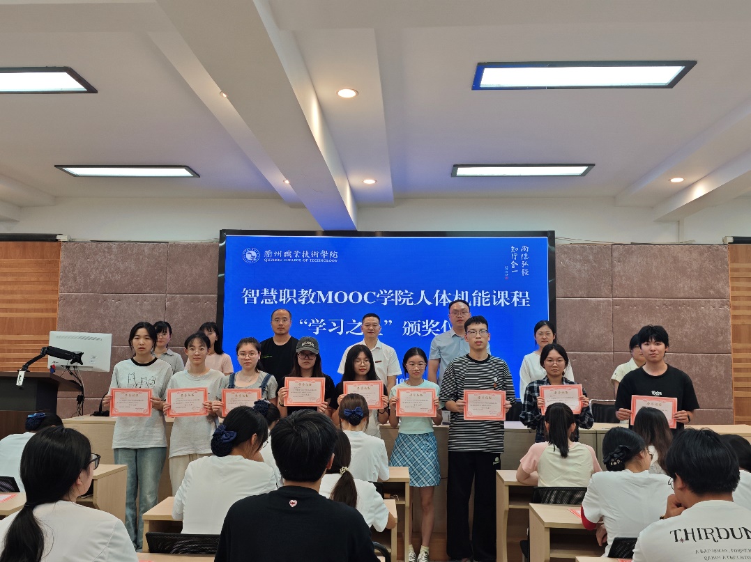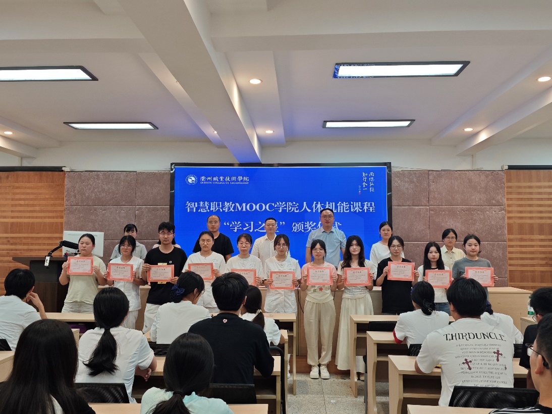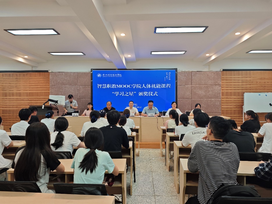 此次共有45名同学获得“学习之星”的荣誉称号,他们在智慧职教MOOC学院人体机能课程在线学习的过程中取得了优异成绩,在班级中名列前茅。仪式上,甘椿椿宣读获奖名单,并对获奖同学表示祝贺。