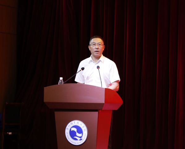 徐文讲话。他指出,衢州职业技术学院是培育高水平创新型人才、高技能产业工人的“育苗”基地,希望同学们珍惜学习机会,汲取榜样力量、点亮梦想之光,在感悟和传承劳模精神、工匠精神过程中丰富自己、提升自己,在实践的熔炉中长见识、强本领,努力成长为新时代的能工巧匠、大国工匠,不断书写技能成才、技能报国的精彩篇章!