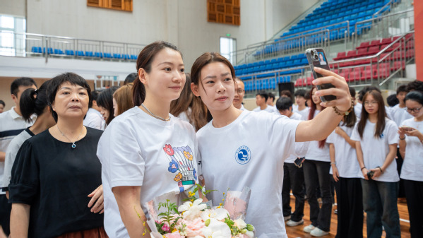 黄雅琼对学校体育教育师资实力雄厚,梯度、结构合理,青年学生朝气蓬勃、阳光向上印象深刻。她表示,学校营造了以体育人的良好氛围,让她倍感亲切,深受感动,希望未来继续增进与学校交流,经常与师生们切磋球技,共同探索人才培养的新路径,推动羽毛球事业高质量发展。