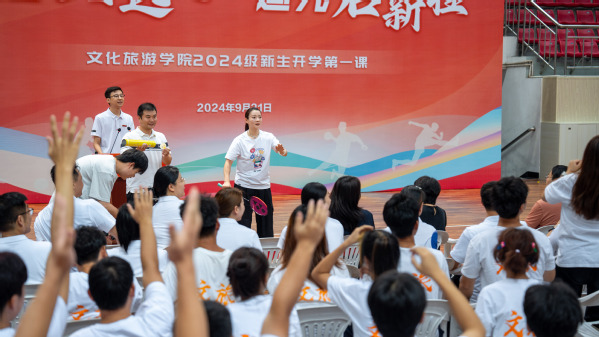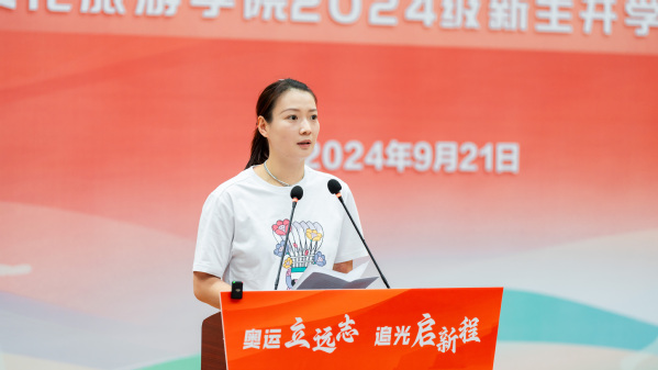 黄雅琼以“以奥运启开学之序,用青春燃梦想之志”为主题,用“坚持”“团队”“拼搏”三个关键词,分享了自己从8岁接触羽毛球,受训10年后首次代表国家队参加国际赛事的经历,讲述了自己克服畏难情绪、直面挑战、战胜挫折、超越自我,最终在2024巴黎奥运会为国争光,实现全满贯的光辉历程,鼓励青年学生们传承奥运精神,坚持梦想,团结合作,奋力拼搏,追求卓越,不负韶华。
