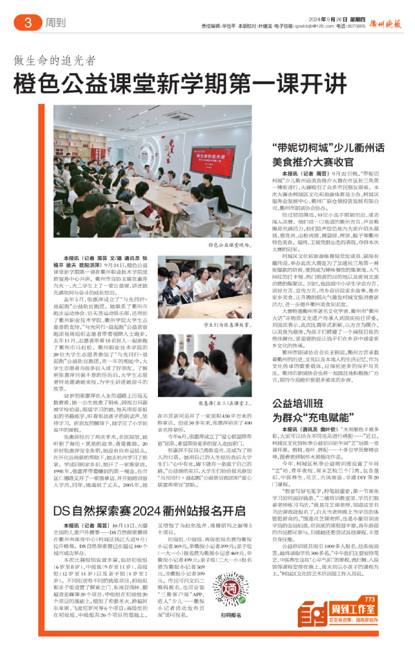《衢州晚报》 2024年9月26日 报道 本报讯 (记者 周芸 文/摄 通讯员 张锦平 徐天 欧阳洪萍)