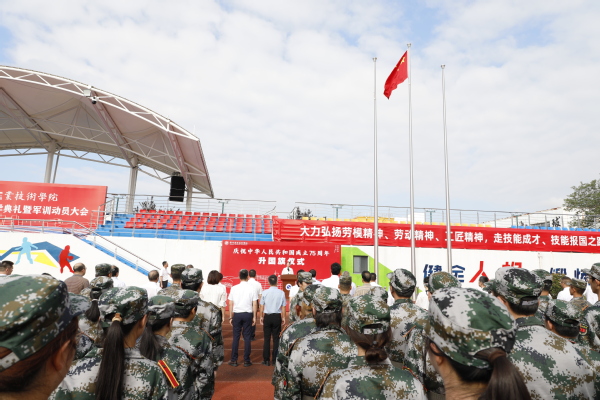 9月30日上午,我校在田径场隆重举行庆祝新中国成立75周年升旗仪式。校党委书记徐须实出席并讲话,党委副书记、校长吕延文主持,党委副书记何百通,党委委员、纪委书记方焕云,党委委员、副校长余建军、徐浪静、姚水洪,党委委员、宣传部部长孔庆红出席。