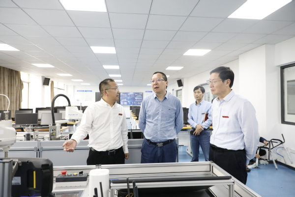 俞继业走访了共富学院、工业互联网实训中心、医护康养实训中心、大健康公共实训中心,详细了解我校学会服务站建设、实训室建设、科技创新和成果转化等工作情况。