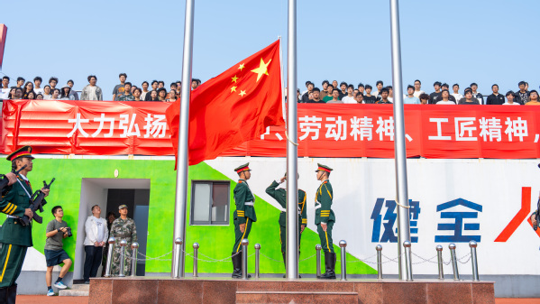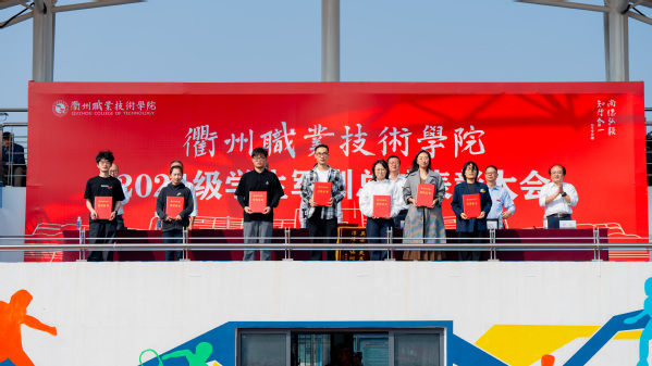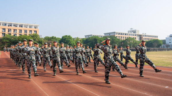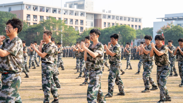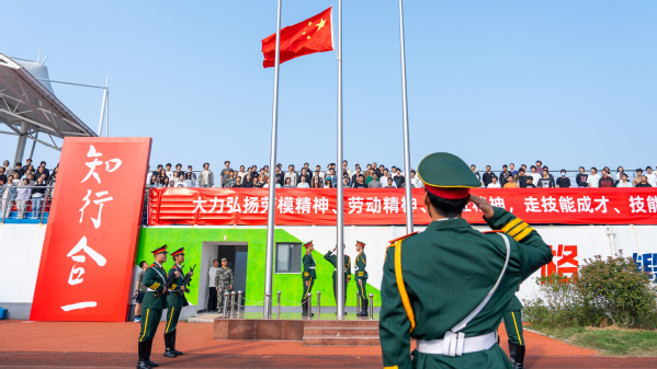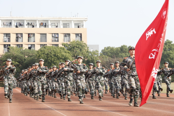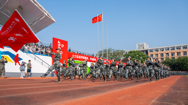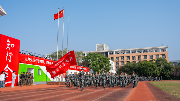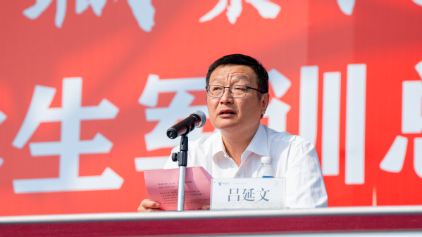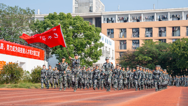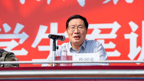 徐须实讲话。他说,青春当“立正”,要坚定信念壮筋骨。要传承守护红色根脉,把听党话、跟党走变成自觉追求,坚定理想信念,把个人成长与国家需求结合在一起,立大志、明大德、成大才、担大任,以“立正”姿态走好人生路。生活有“稍息”,要张弛有度长才干。要把军训期间养成的良好习惯保持下去,坚持体育锻炼、坚持文化学习,认真钻研技能技术,在实践中经风雨长才干。始终“向前看”,要昂扬向上强自信。要时刻保持“向前看”,增强自信自立,践行“尚德弘毅,知行合一”校训,坚定走技能报国之路,努力成长为熟练掌握一技之长、可堪大用、能担重任的栋梁之材。