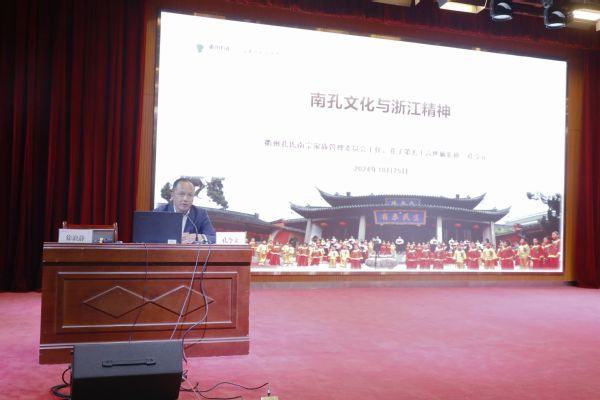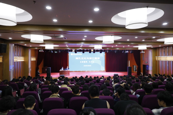 10月25日下午,孔子七十六代嫡长孙,衢州孔氏南宗家庙管委会主任孔令立受邀为我校师生作题为《南孔文化与浙江精神》的专题讲座。党委书记徐须实出席,党委委员、副校长徐浪静主持,300多名师生参加。