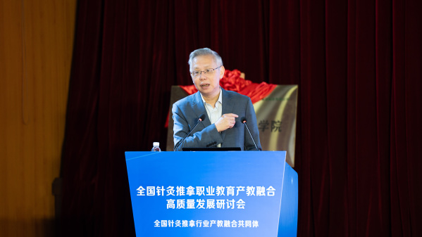 韩军作题为《中医药职业教育现状与产教融合实施路径》的主旨报告。