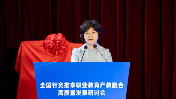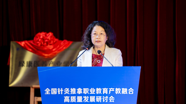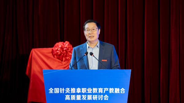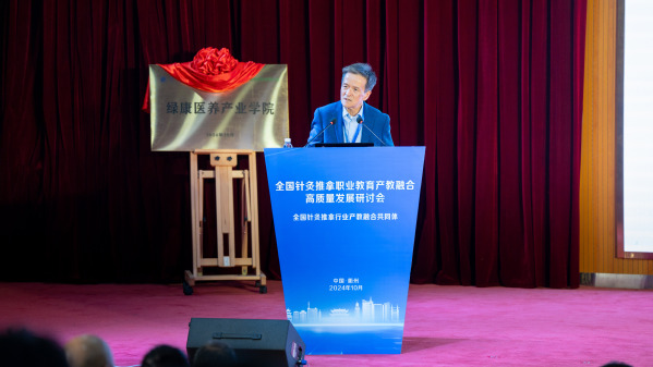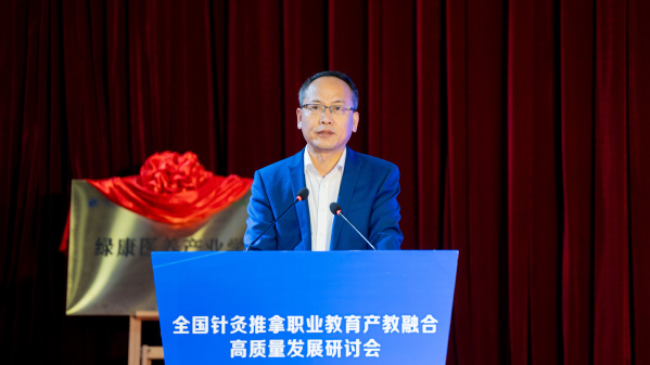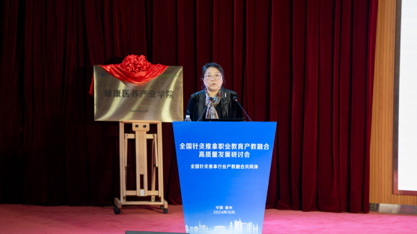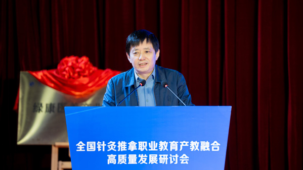 刘保延讲话。他希望共同体高标准打造“杨继洲针灸文化”品牌,助力针灸文化在世界的传播;高水平发挥全国针灸推拿行业产教融合共同体作用,扩大职业教育成果转化、加快针灸推拿产教高质量融合;高质量谋划好中医药康养复合型技术技能人才培养,为基层社区培养更多新质复合型的中医药康养人才,为针灸推拿行业注入新的活力和动能。