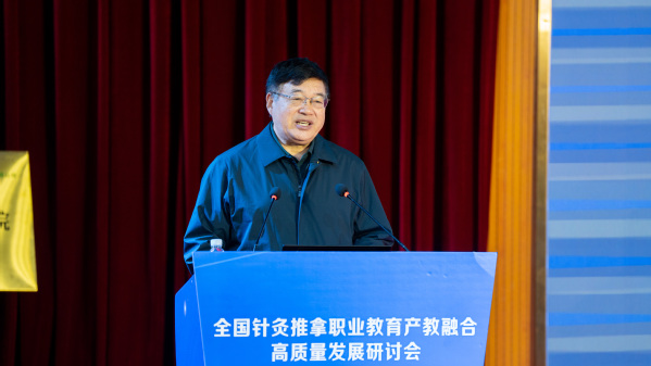 理事长单位代表、我校党委书记徐须实作表态发言。他表示,学校将把高质量建设全国针灸推拿职业教育产教融合共同体作为重大项目加以推进,主动扛起理事长单位职责使命,和共同体成员单位齐心协力,全力以赴办好针灸推拿、中医学等专业,积极探索产教融合创新模式,强化教学团队能力建设,全力培养高素质中医针灸复合型技术技能人才,助力中医康养产业的高质量发展。