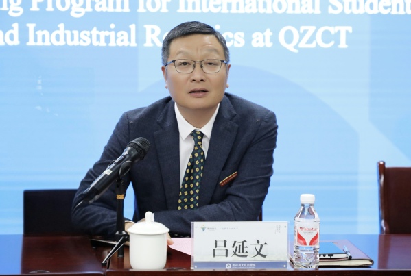 吕延文讲话。他表示,学校近年来积极响应中国“一带一路”倡议,不断深化国际化职业教育交流合作,以“引进来”“走出去”等方式充分拓展国际交流渠道,全力打造多元人才培养模式。希望两校以此次合作为起点,在学术交流、人才培养和科研合作等方面进一步拓展国际交流空间,共同探索国际化教育合作的新模式、新路径,培养更多具有国际视野的高素质技术技能人才。