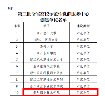 近日,浙江省教育厅公布了第三批高校示范性党群服务中心创建单位名单,我校党群服务中心成功入选示范单位。