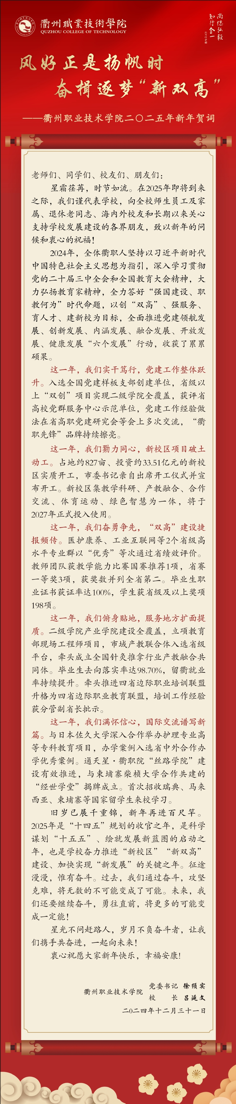 衢州职业技术学院2025年新年贺词