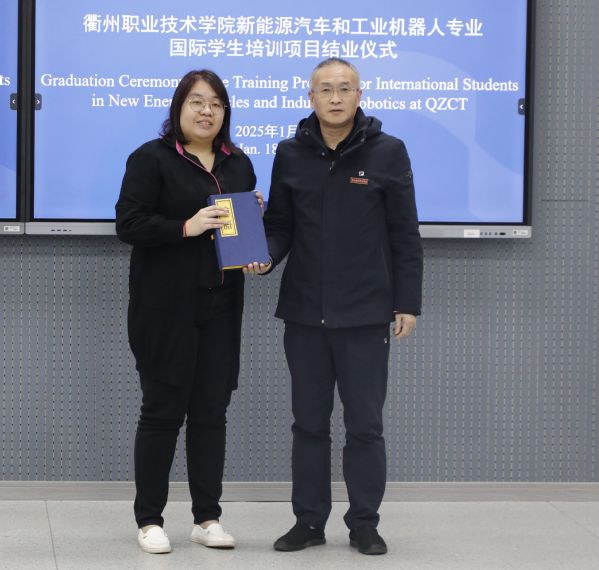 机电工程学院院长魏小华为留学生颁发结业证书。