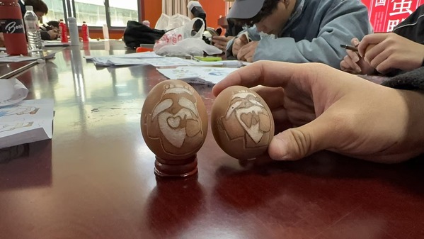 蛋雕课上,留学生们在衢州蛋雕非物质文化遗产代表性传承人、衢州市民间工艺大师潘夏皓指导下,在鸡蛋上绘制草图,再用特制工具小心翼翼地刻划线条。一把刻刀,潘夏皓能在薄薄的鸡蛋壳上刻上山水、人物、花鸟,摇身变成栩栩如生的艺术品,精细的操作让留学生们叹为观止,让留学生们深受启发,见证了巧夺天工的中国传统技艺。