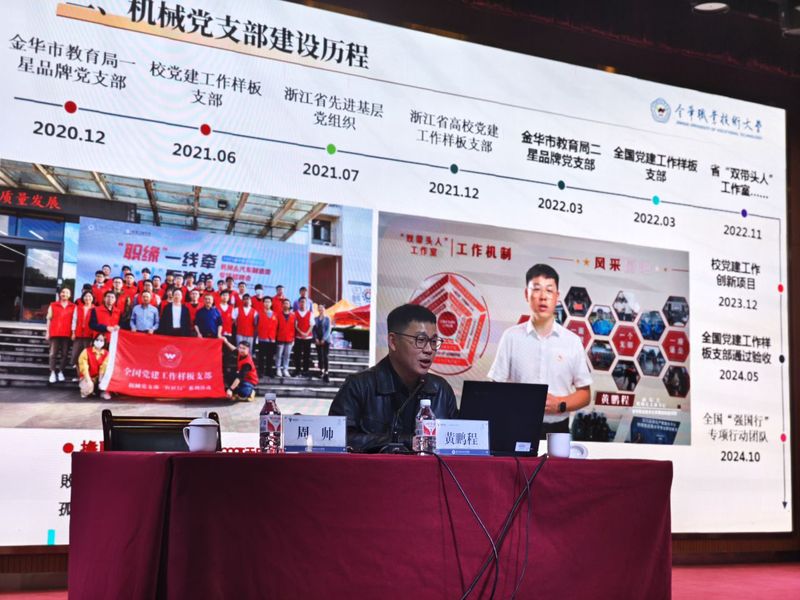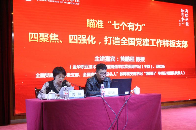 本次讲座邀请了金华职业技术大学智能制造学院党委副书记(主持)、副院长黄鹏程教授担任主讲嘉宾。黄教授是全国党建工作样板支部、全国高校“双带头人”教师党支部书记“强国行”专项行动团队、省党建工作标杆院系、省高校“双带头人”教师党支部书记工作室、省党建工作样板支部、省先进基层党组织的负责人。
