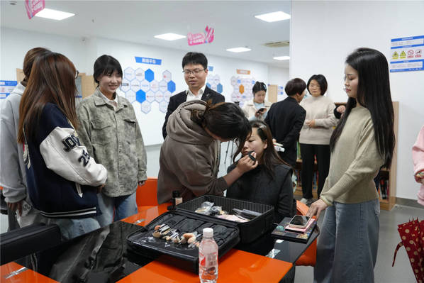 本次训练营课程内容涵盖了美妆技巧、职业素养、创业指导等多方面,旨在帮助学员们成为具备创新思维和实操能力的复合型创业者。开班仪式最后,美妆训练营学员在现场观摩教师给学员试妆,进行训练营课前热身。