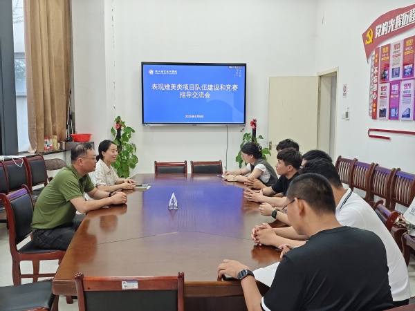 讲座后,杨冬钧副教授与学院相关教师在文旅一楼会议室进行了表现难美类项目队伍建设和竞赛指导交流会。杨老师结合自身多年在队伍建设和竞赛指导方面的丰富经验,从选材、队伍培养、团队建设等多个角度进行了深入分享。在交流环节,杨老师与在座教师就竞赛指导、赛事承办等内容进行了讨论。