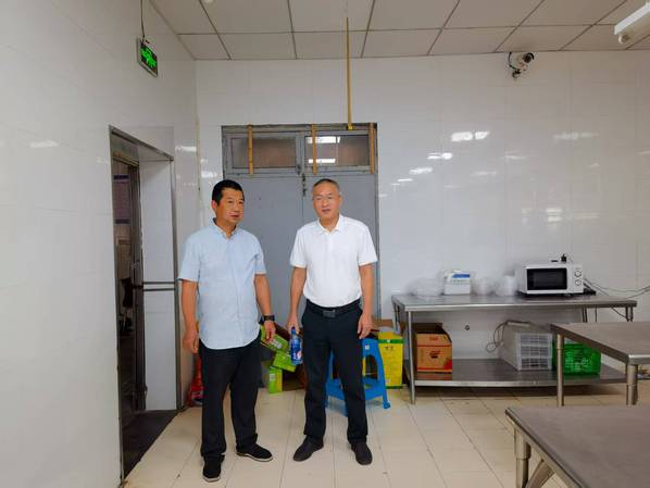 在食堂改造现场,何百通重点了解防火门、人员门禁、后厨线路改造等情况,要求食堂承包企业主要严格落实“三防”各项措施,强化人员培训,及早谋划开学供餐工作,确保让师生吃得放心、吃得舒心。