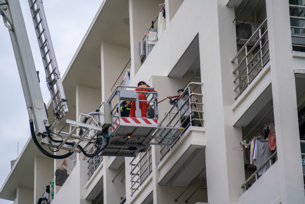 与消防疏散演练同时进行的还有防汛救灾演练和电梯救援演练。