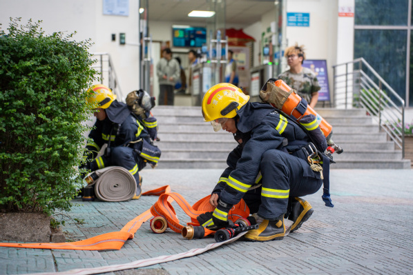 本次演练分为反恐防爆、消防疏散、医疗救护、电梯救援、防汛救灾等部分。