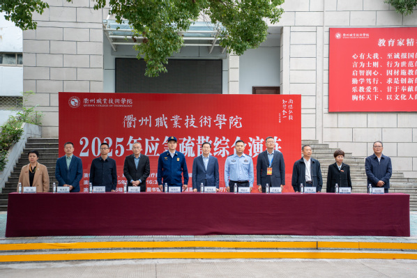 10月21日,我校举行2025年应急疏散综合演练。衢州市公安局柯城公安分局党委副书记、常务副局长熊海平,智慧新城消防大队大队长何燕军受邀现场观摩,校党委书记徐须实,党委副书记、校长吕延文等校领导班子成员出席。