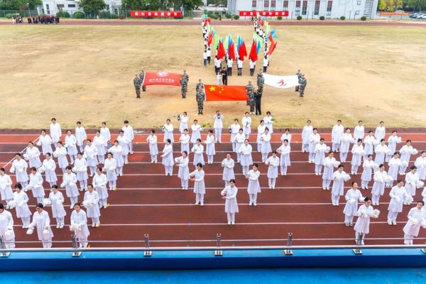 国旗队、校旗队、会旗队、彩旗队、各学院方阵和裁判员方阵迈着铿锵的步伐,意气风发地步入会场。翻腾的龙狮、舒缓的八段锦、齐整的大型团体操接连登场,全面展现了衢职院师生昂扬奋进的青春风采。