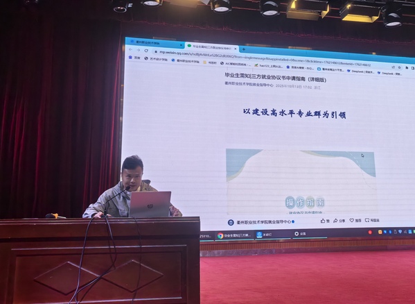 学工办李治丹老师就毕业相关事宜及实习协议签署流程作了具体说明,并重点强调了实习期间的安全责任与行为规范。他提醒同学们要严格遵守学校与企业的各项管理制度,增强自我保护意识,确保实习全程安全、规范、有序。
