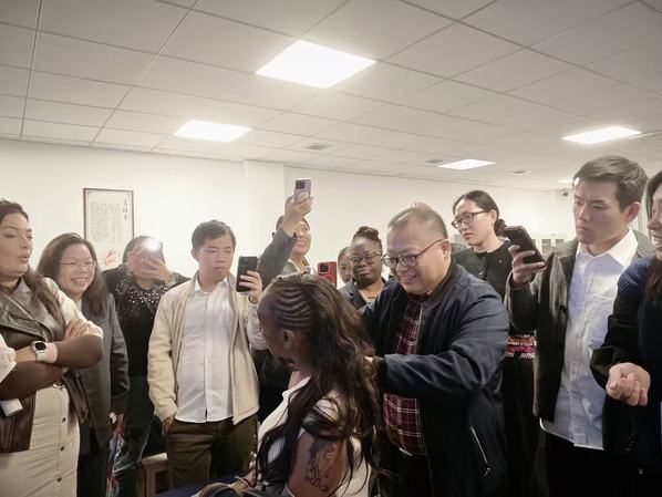 在国家级非物质文化遗产第五代传承人、我校客座教授金瑛带领下沉浸式体验了杨继洲非遗针灸技法的精妙与深邃,他们感受了中医“道法自然、调和致中”的核心智慧。