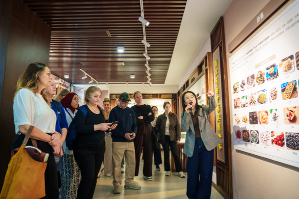 学员们走进衢江区中医院杨继洲针灸博物馆,留学生们纷纷驻足在泛黄的古籍展柜前,忍不住赞叹于四百年前的医者,竟然能把人体的经络穴位描绘得如此精确;在针灸器具展区,一套清代的九针模型引起了众人的兴趣;等比例复制的明代针灸铜人最让留学生们惊叹,小心翼翼地触摸着铜人身上的穴名标记……
