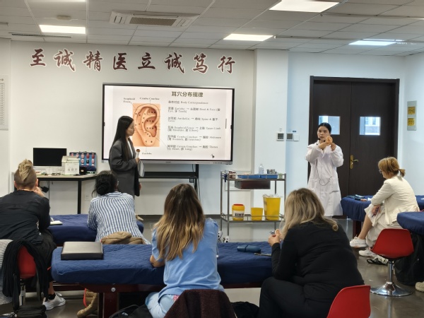 中医美容、针灸减肥课程最受女留学生追捧,在老师示范下,他们了解了如何通过美容针针刺四白等穴位改善面部气血循环,淡化色斑;如何运用耳穴压豆抑制食欲,配合体针调节内分泌。留学生在笔记本上认真记录:“原来美丽的根源在五脏六腑。”