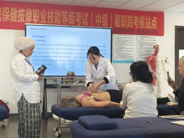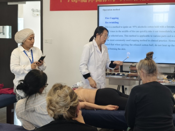 最让留学生们惊叹的是刮痧与拔罐的即时效果。第一次为同伴施行刮痧,看着皮肤上渐渐显现的红色痧象,既紧张又兴奋。“这是体内病邪外出的表现。”老师一边指导力度,一边解释着“出痧”的医理。在拔罐区,伴随着“啪”的清脆声响,一个个玻璃罐稳稳吸附在背上,留学生们专注地观察着罐内皮肤的变化,学习辨别不同颜色的罐印所代表的身体讯息。